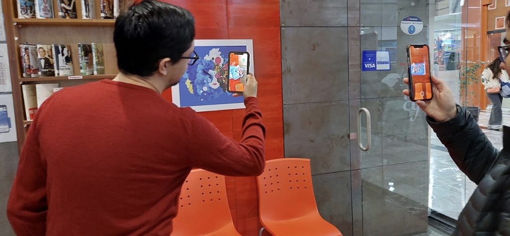 A través de la realidad aumentada, los visitantes pueden disfrutar de las versiones digitales de cada obra física, ver sus animaciones, sus capas y sonidos. Ser partícipes de su proceso creativo, ver cómo evolucionan con el tiempo, se entretejen y se fusionan con otras obras, espacios y públicos. Es una forma diferente y divertida de conocer la obra y experimentar con ella desde todas sus etapas y versiones.