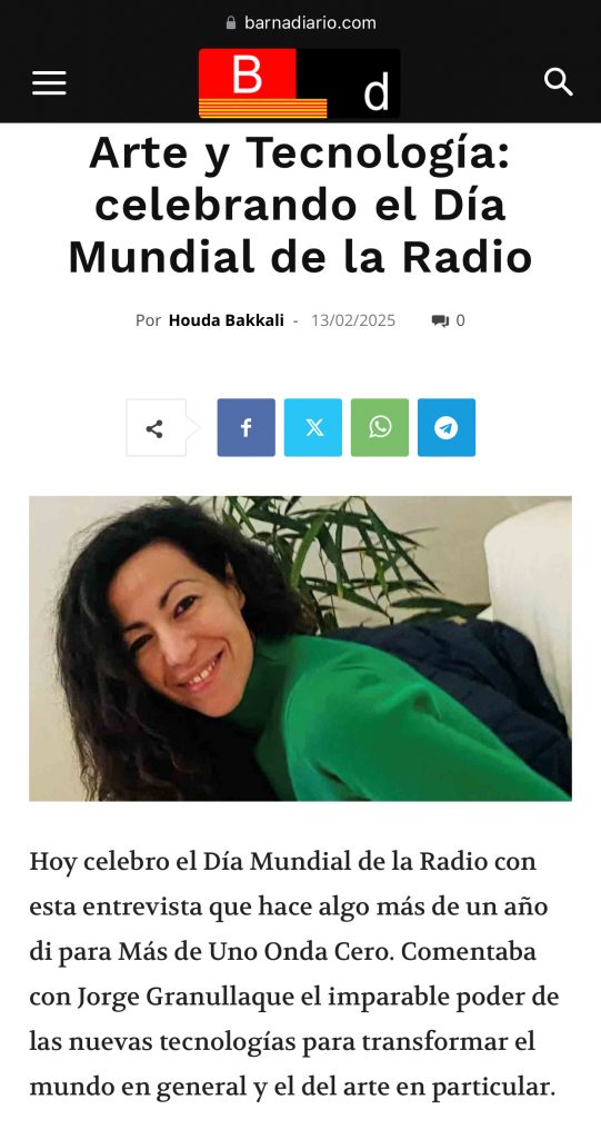 Hoy celebro el Día Mundial De La Radio con esta entrevista que hace algo más de un año di para Más de Uno | Onda Cero. Comentaba con Jorge Granullaque el imparable poder de las nuevas tecnologías para transformar el mundo en general y el del arte en particular. Un nuevo establishment que da paso al pensamiento técnico, crítico y lógico frente a las elucubraciones. El impacto real de una realidad que hemos querido mirar de perfil mientras ésta seguía su propio e imparable ritmo, haciéndose con un espacio ilimitado para quedarse, afianzarse, crecer e ir siempre varios pasos por delante de todo y de todos. Un contexto marcado por un viaje apasionante hacia la creatividad absoluta e infinita de la Inteligencia Artificial, por supuesto, en mayúsculas. También de los nuevos debates, espacios, herramientas y tecnologías digitales que impactan en el arte, en la ciencia, en la educación, la cultura y en nuestro día a día, en muchas ocasiones de la manera más sutil y desapercibida…, suponiendo una transformación en el fondo y en las formas que se traduce en productividad, en análisis predictivos, en automatización de procesos, en el acceso universal al conocimiento, y en un muy largo etcétera. Generando múltiples retos y una infinidad de oportunidades que a su vez desafían cada segundo la creatividad y la inteligencia humana y ponen a prueba nuestro talento para entender, asumir, usar y compartir la tecnología como la mejor aliada para la innovación y el progreso de un futuro que ya es hoy.