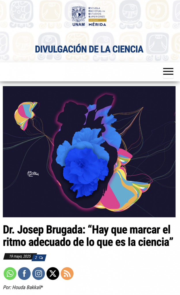 Asimismo, este medio publica una extensa entrevista con el Dr. Josep Brugada, abordando la relevancia de la divulgación científica en el ámbito de la educación en salud, así como el impacto de las nuevas tecnologías en la Medicina. A través del criterio del Dr. Brugada, se pone en valor la necesidad de una comunicación científica rigurosa y comprensible.