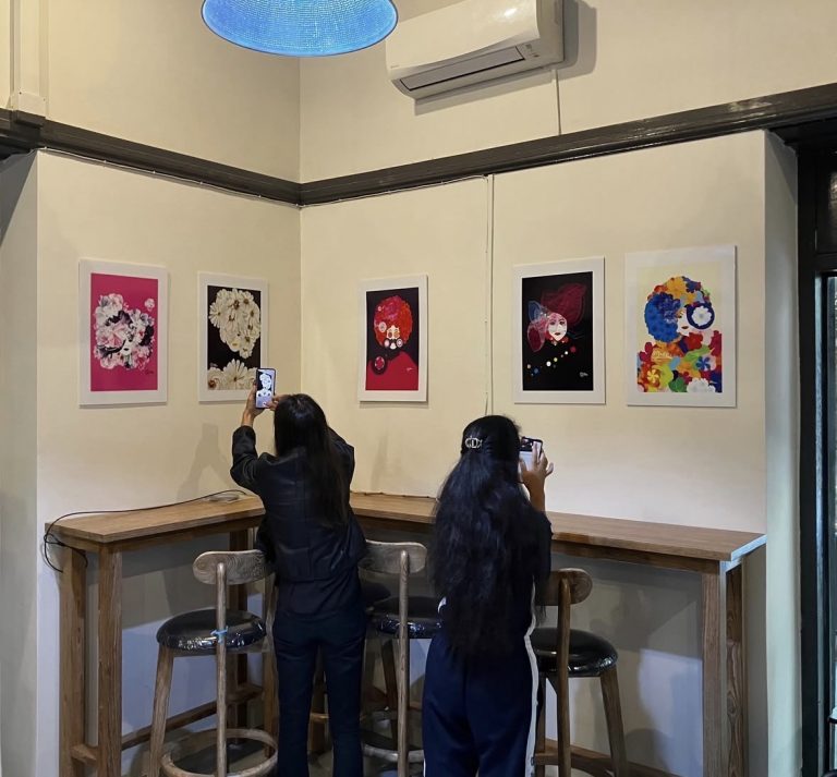 The exhibition highlights the female figure and perspective, in tribute to the artist’s mother. Through the use of intense colors, dynamic forms, and an intersection between illustration and voluptuous flowers, it seeks to convey a joyful, hopeful, and optimistic vision of life.