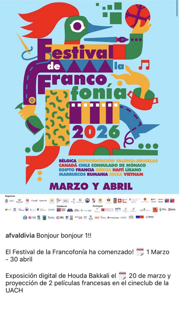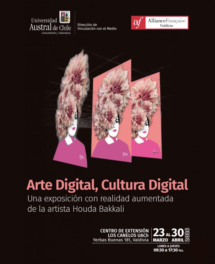 A partir del 20 de marzo, 2026, la Alianza Francesa de Valdivia y la Universidad Austral de Chile, acogen la exposición Arte Digital, Cultura Digital de Houda Bakkali. La muestra integra obras físicas y digitales donde predomina el uso de realidad aumentada, animación y elementos interactivos, proponiendo un formato expositivo que permite al público explorar nuevas formas de interacción e interpretación artística.