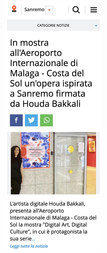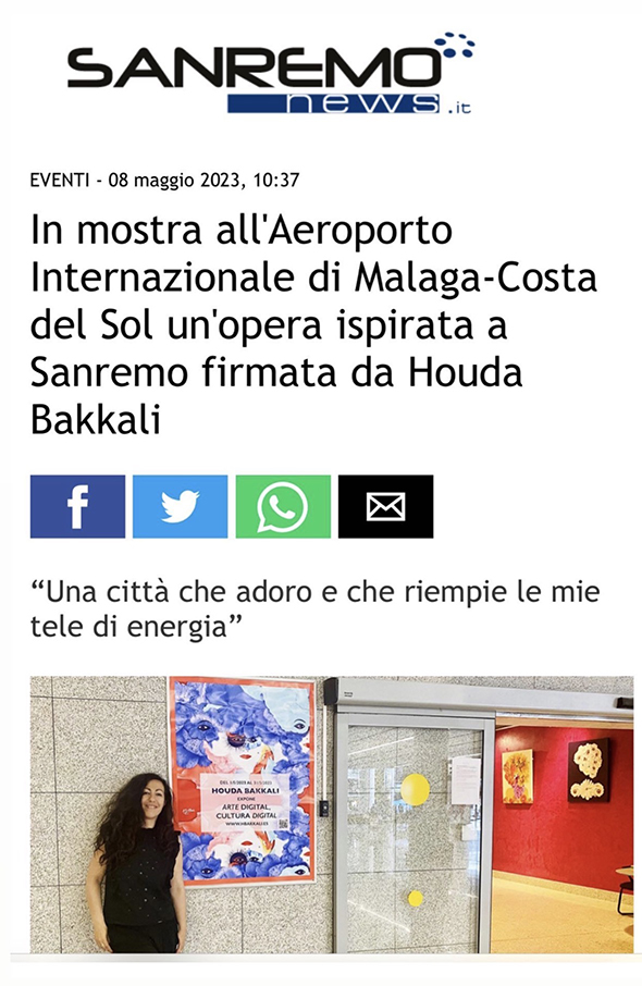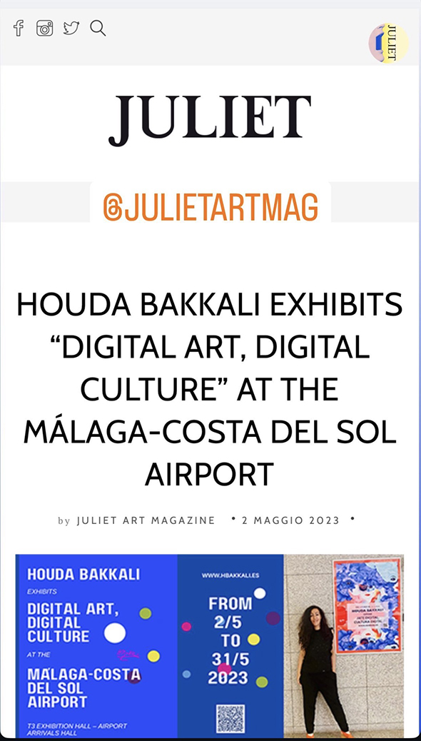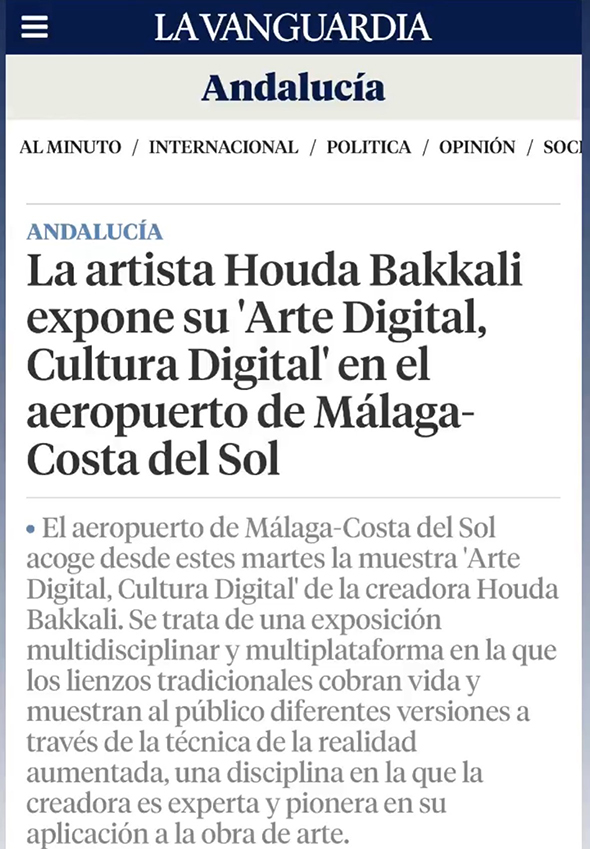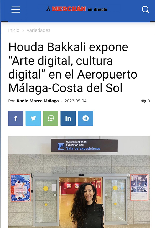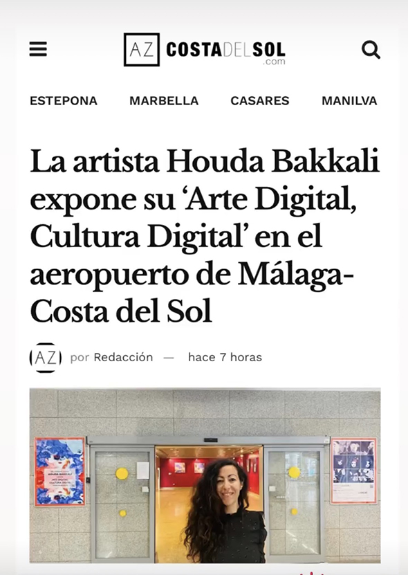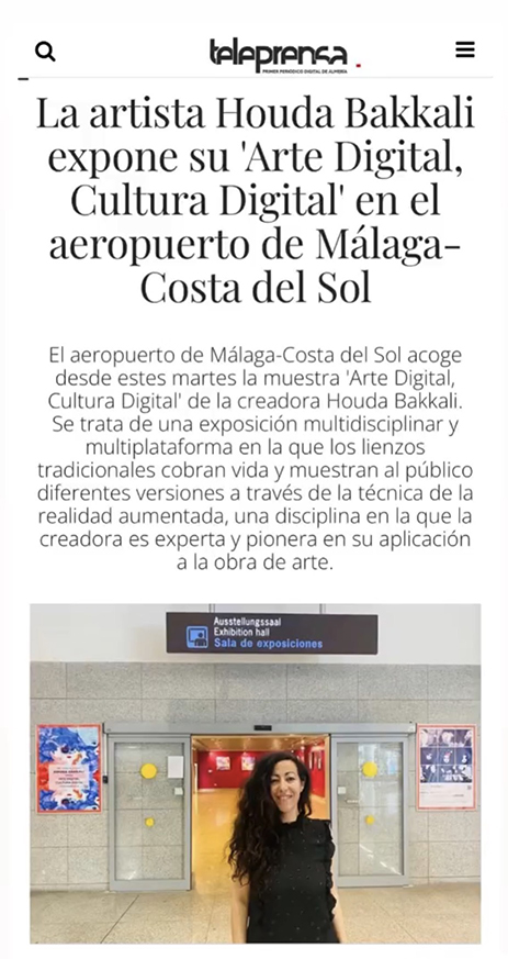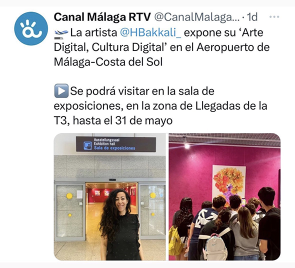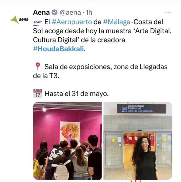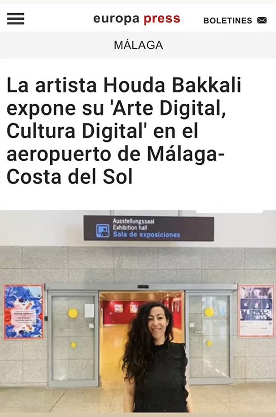 Houda Bakkali presents Digital Art, Digital Culture at Málaga–Costa del Sol Airport, transforming the airport’s Terminal 3 Exhibition Hall (Arrivals Area) into an immersive cultural space. The exhibition is open to the public from May 2 to May 31, 2023.