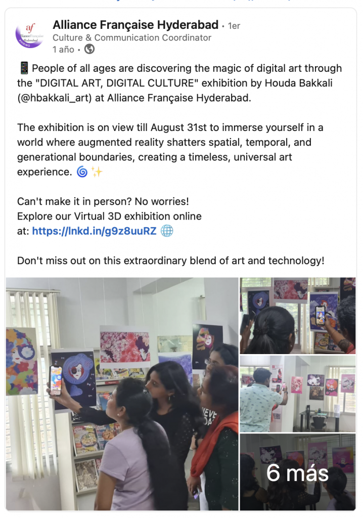 The exhibition Digital Art, Digital Culture by Houda Bakkali is presented at Alliance Française of Hyderabad, India.