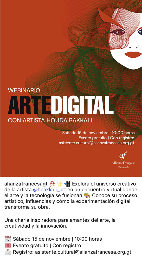 Particularly noteworthy is her lecture at the European Commission during the Madrid Book Fair (Spain), as well as her work at the intersection of art and education through exhibitions held across the Alliance Française in 36 cities and 22 countries. These initiatives promote immersive educational experiences through multimedia and interactive content, addressing the impact, challenges, and opportunities of new technologies applied to art.